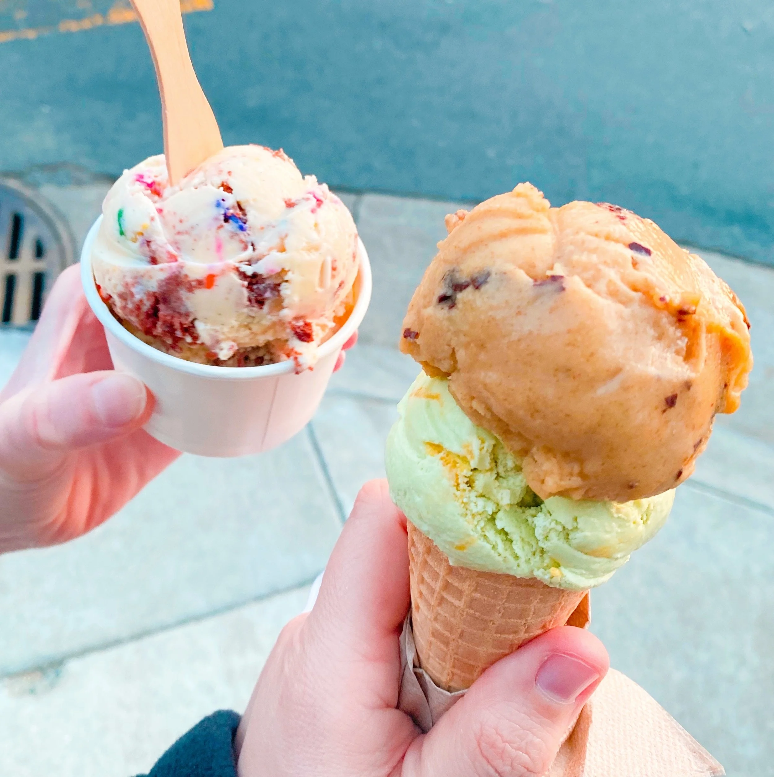 I got Banana Bonanza and Pandan Mango Swirl, and I believe Caitlin got Birthday Cake. When I have my Sweet Tooth Tracy hat on I really try to be adventurous and try something unique to the venue. But when I don’t have the hat on (not to be confused with the literal baseball cap I bought at Bi-Rite), y’all know I’m a cookies ‘n’ cream person to my core. Bi-Rite’s been there for me through a lot and it was fun to try new flavors!