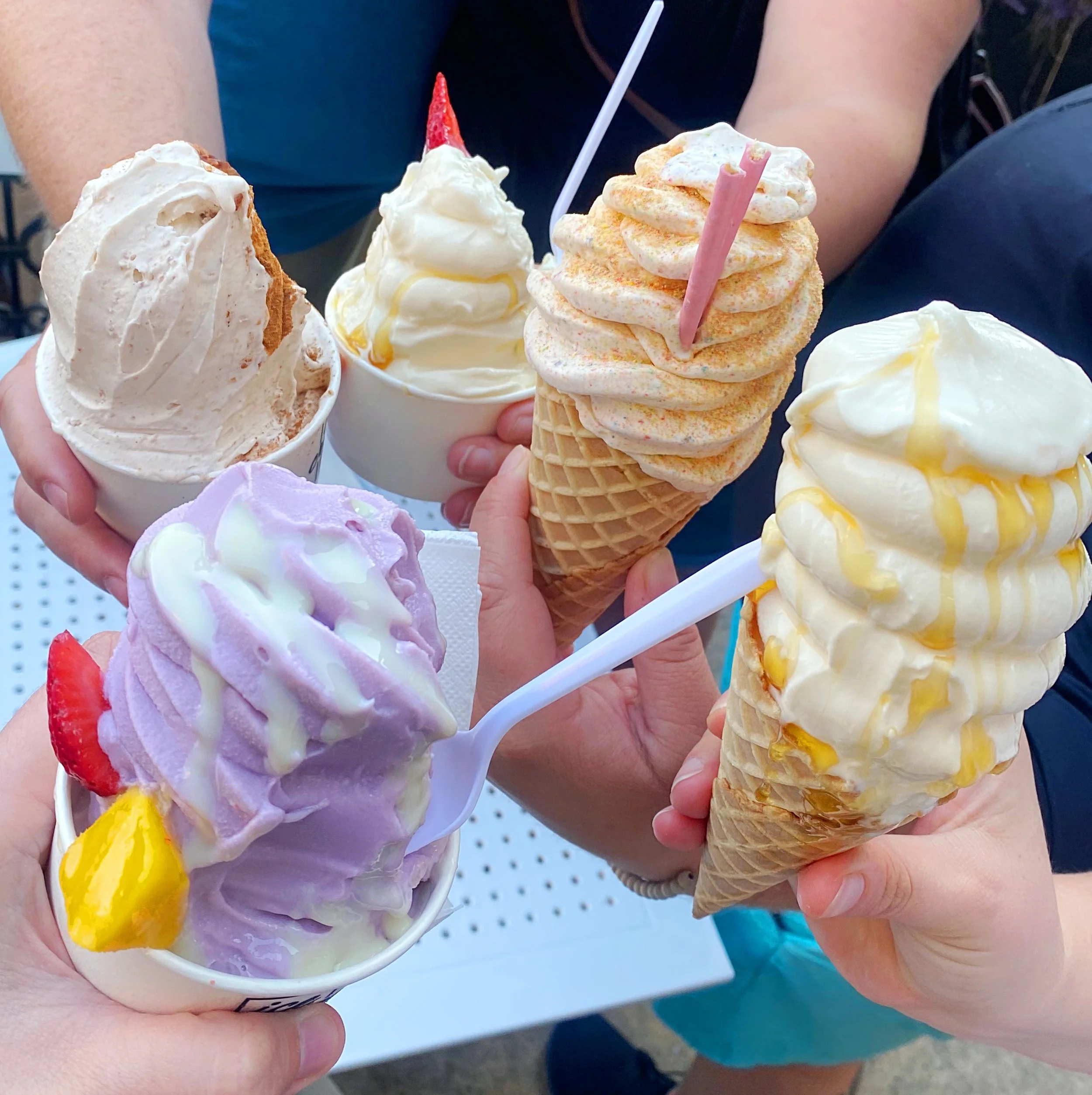 Plaza grandeur on the outside, iiiiitty bitty living space on the inside, but they’ve made their lil nook very cute! I got the Paradise Sundae - ube soft serve topped with condensed milk, strawberries, and mangoes. Fun fact, that is the only one of their specialties that cannot be served in a cone because there’s fruit in the bottom, too! It was cute and purple and delicious, although I think I must finally admit that I like mango flavor a lot better than I like mango fruit itself.