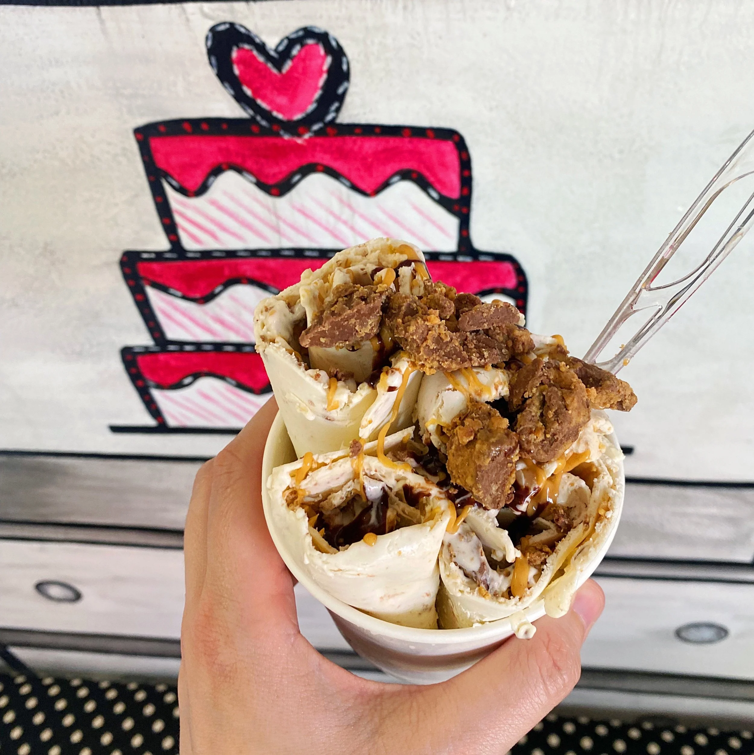 I proclaimed my bold return with tidings of extremely-local-to-me Mad Cakes, and I’m back today with some specifics about one of their specialties: rolled ice cream!