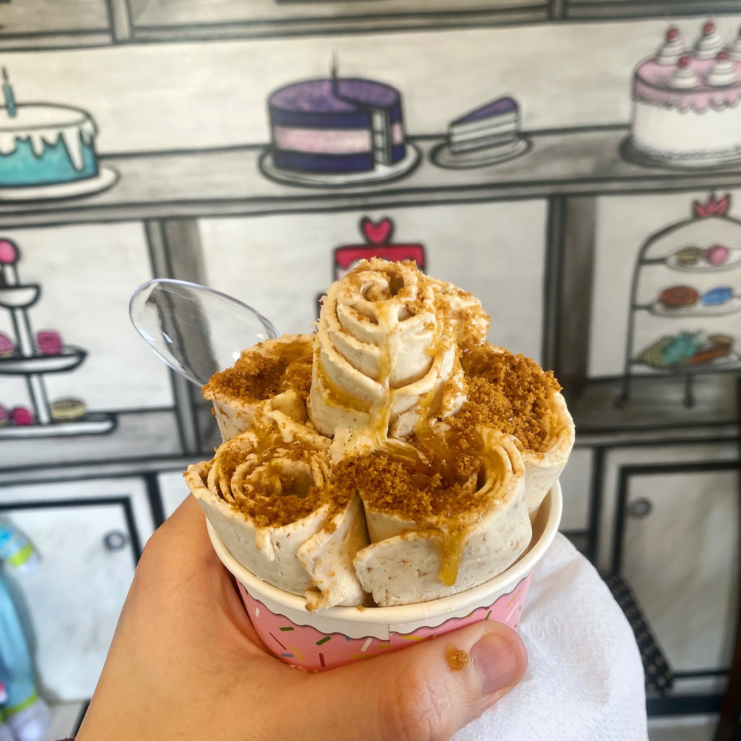 On another visit I tried the Butter Biscoff, featuring a vanilla base with biscoff and butterscotch syrup mixed in and as toppings. I really appreciate that Mad Cakes has a menu of pre-designed flavor combos for rolled ice cream - I am someone who can be very overwhelmed by limitless options. You can also create your own flavor mix, or customize one off the menu to better suit you, but I like having a little guidance! Both flavors I’ve tried so far have been absolutely spectacular! I can’t wait to go back and try some more. Check their instagram for happy hour promotions!