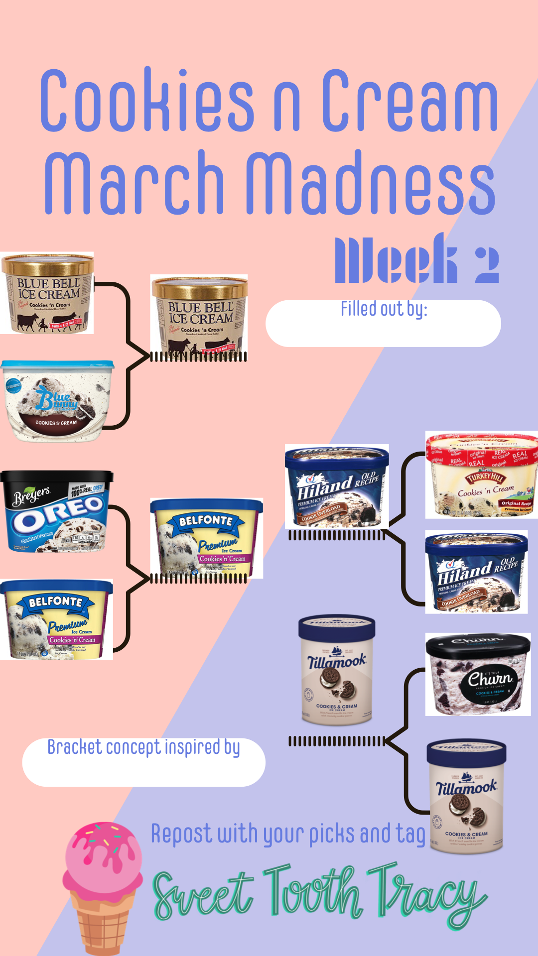 The Tillamook - It’s Your Churn side of the chart was a much more delicious competition. The updated bracket is below and I’ll post a blank final four on instagram to get your picks! See the cookies awarded over on @sweettoothtracy, too. When we get to the finals I’ll give my true ranking as well!