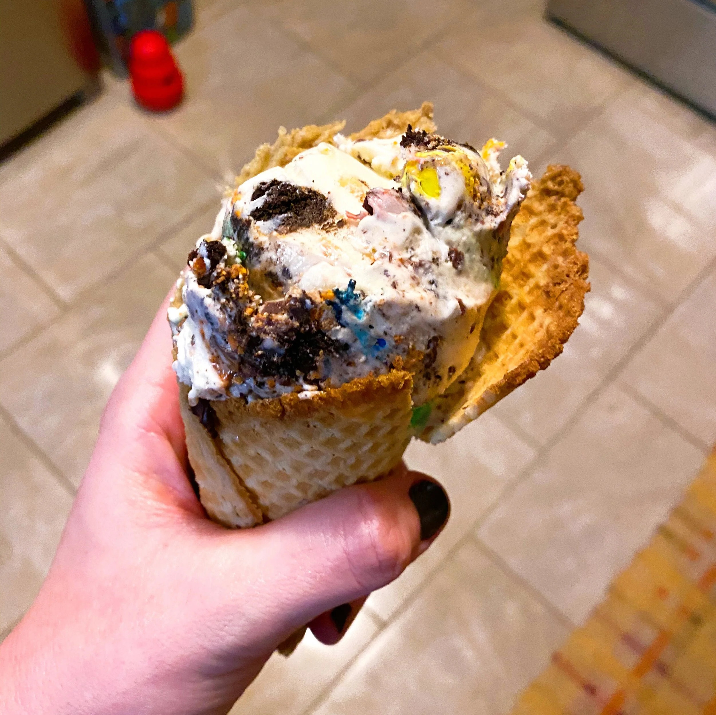 Ok, so, I’ve been teaching in person since September and making ice cream is truly a massive time commitment. Let’s be honest, it hasn’t been happening. But! I snagged a waffle cone maker on ebay at some point (my apologies to my mother who’d been planning to give me one for Christmas), and I decided I could try my hand at the skill.