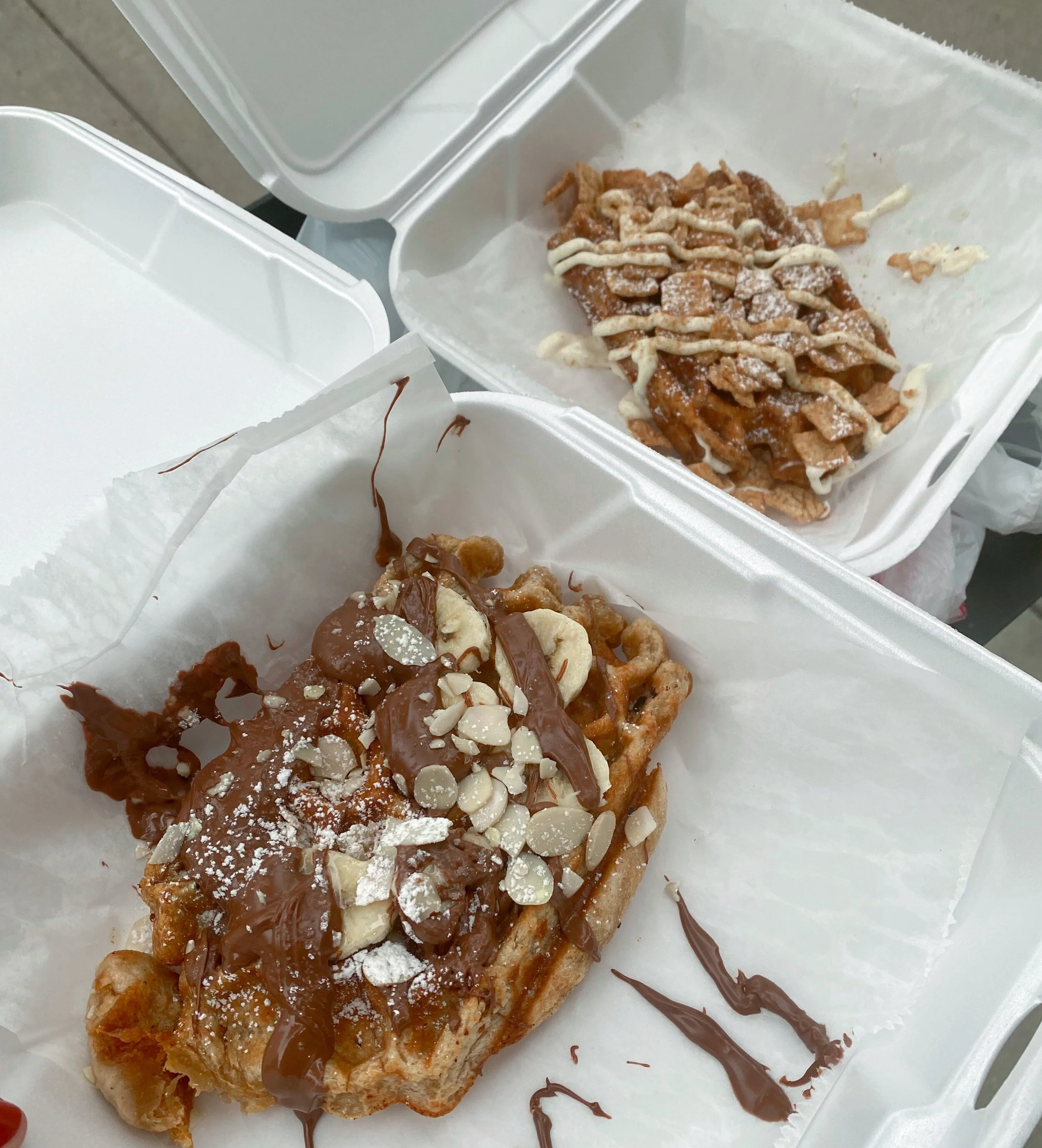 What I learned was that the location is… mostly a bar. The waffles seemed like kind of a fun accessory to the bar, rather than being… worth going for on their own… y’know? We tried the Banana Nutella and the Churro Crunch. Neither looked like the photos online. And neither… was really worth the trip? I’m sure if you’re at the bar late at night it’d be a great treat.